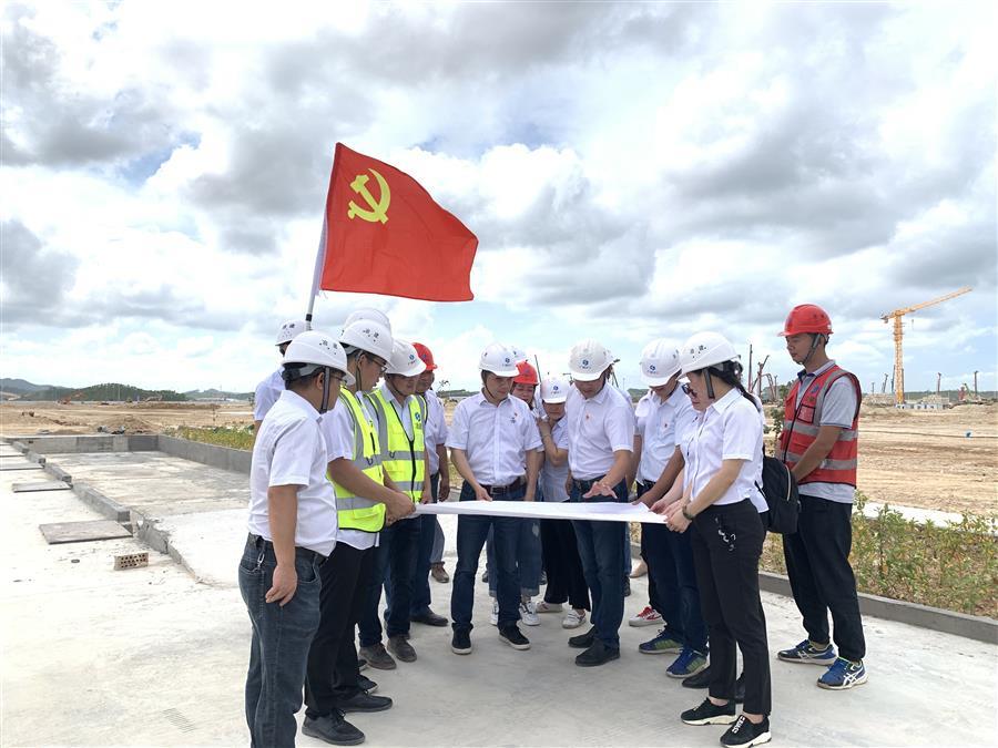 黨員帶領(lǐng)項(xiàng)目管理人員研究圖紙