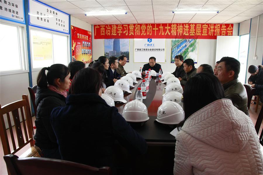 1月17日,公司黨委書記、副總經理張濟璜,組織人事處處長梁金峰到由工業(yè)設備安裝工程公司承建的廣西玲瓏輪胎200萬套全鋼主車間工程項目部開展學習貫徹黨的十九大精神進基層宣講報告會。