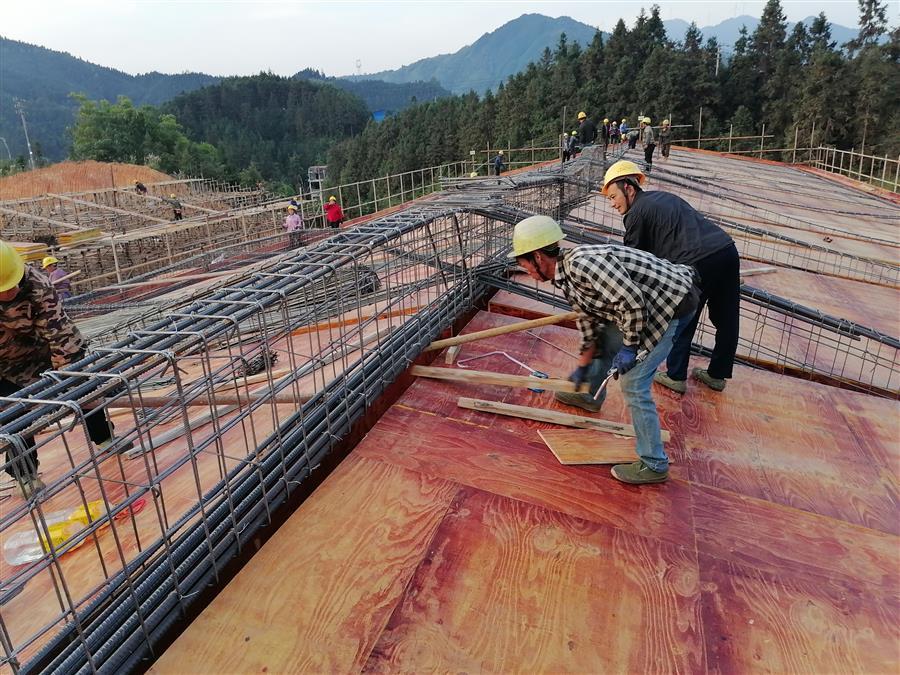 該項(xiàng)目位于融水邊遠(yuǎn)山區(qū),施工條件艱苦,項(xiàng)目管理人員直面困難,全力抓好項(xiàng)目施工生產(chǎn)、安全質(zhì)量等各項(xiàng)管理工作,確保項(xiàng)目建設(shè)有序推進(jìn)。目前,項(xiàng)目施工正有條不紊地推進(jìn),5#樓一層屋面鋼筋綁扎完畢,4#樓一層屋面模板安裝完畢,1#樓一層內(nèi)架搭設(shè)完,7#樓正在基礎(chǔ)施工。