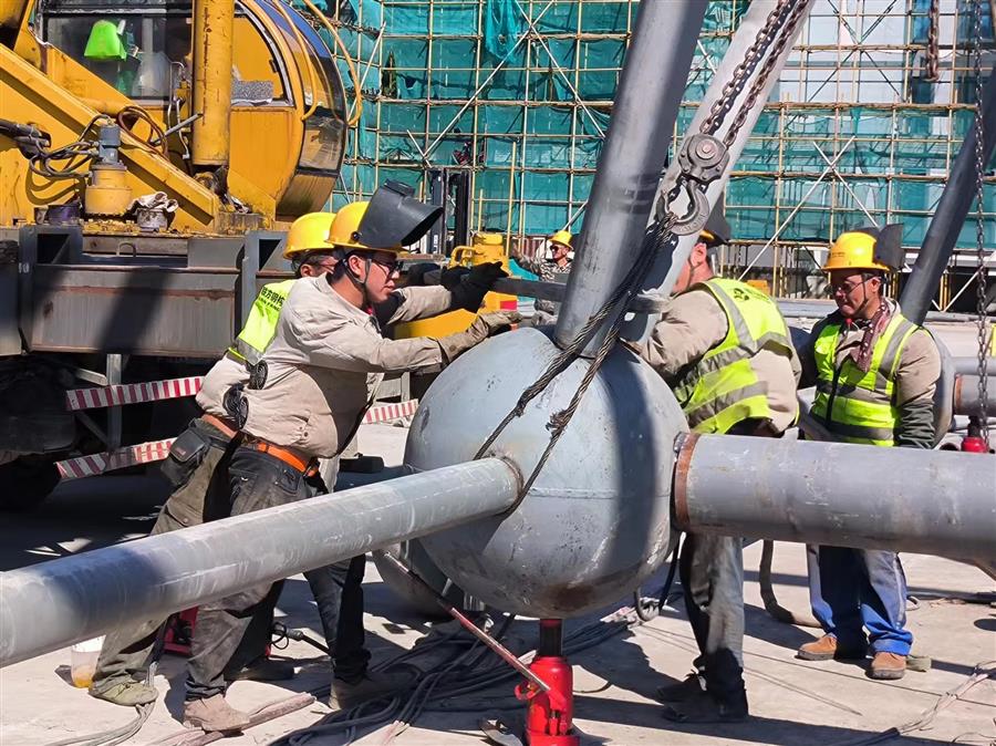 項(xiàng)目總建筑面積4.46萬平方米,建設(shè)內(nèi)容為文化會展中心和英德茶文化博物館(含紅茶研發(fā)中心、檢測中心和交易中心)等。目前,項(xiàng)目正在進(jìn)行網(wǎng)架拼裝、加焊、焊接囗打磨、鋼球刷漆等工作,鋼結(jié)構(gòu)施工進(jìn)度為65%。
