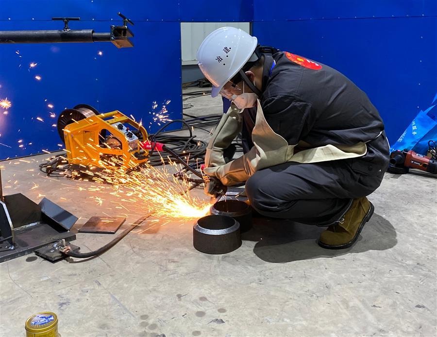 雖然比賽現(xiàn)場下著小雨,但是比賽氛圍依舊十分熱烈,選手們熟練地操作著各類工具,按照施工工序出色地完成了鋼筋綁扎、磚塊砌筑、材料焊接等比賽項目。