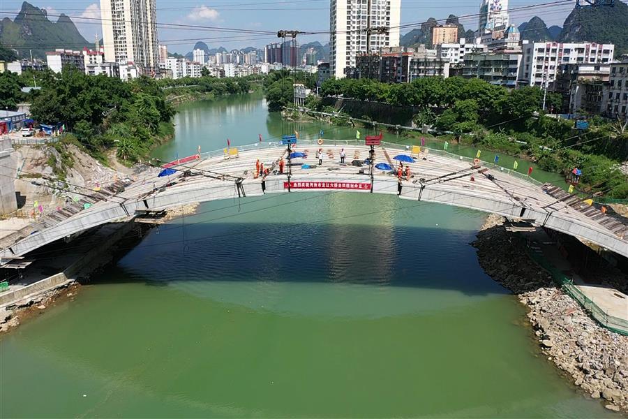 8月3日,隨著最后一節(jié)(第98節(jié))砼拱箱精準(zhǔn)吊裝至預(yù)定位置,標(biāo)志著冶建公司桂金分公司承建的河池市龍江六橋(輝樂(lè)橋)順利實(shí)現(xiàn)主拱圈全面合龍。公司黨委副書(shū)記、紀(jì)委書(shū)記、工會(huì)主席賴海標(biāo)到現(xiàn)場(chǎng)指導(dǎo)。