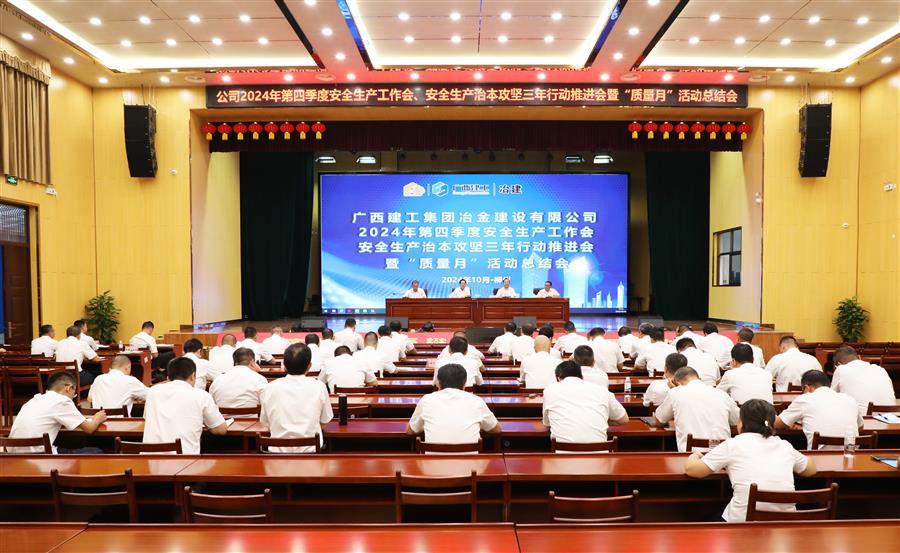 10月10日,冶建公司2024年第四季度安全生產(chǎn)工作會、安全生產(chǎn)治本攻堅三年行動推進會暨“質(zhì)量月”活動總結(jié)會在禮堂召開。公司總經(jīng)理、黨委副書記蒙勝益參加并講話,副總經(jīng)理、總工程師廖立波,副總經(jīng)理何勇參加,代安全總監(jiān)韋克雪主持。